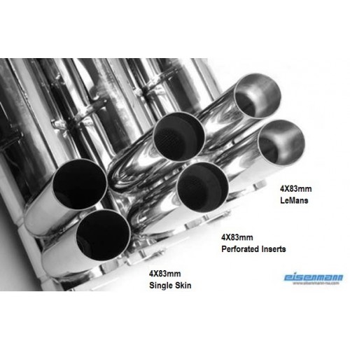 Eisenmann's bmw e92 m3 exhaust system features 4x83mm lemans tips, sport or race sound options, and eisenmann's trademark tone for a deep sound at low rpm, and a true performance car scream at high rpm.