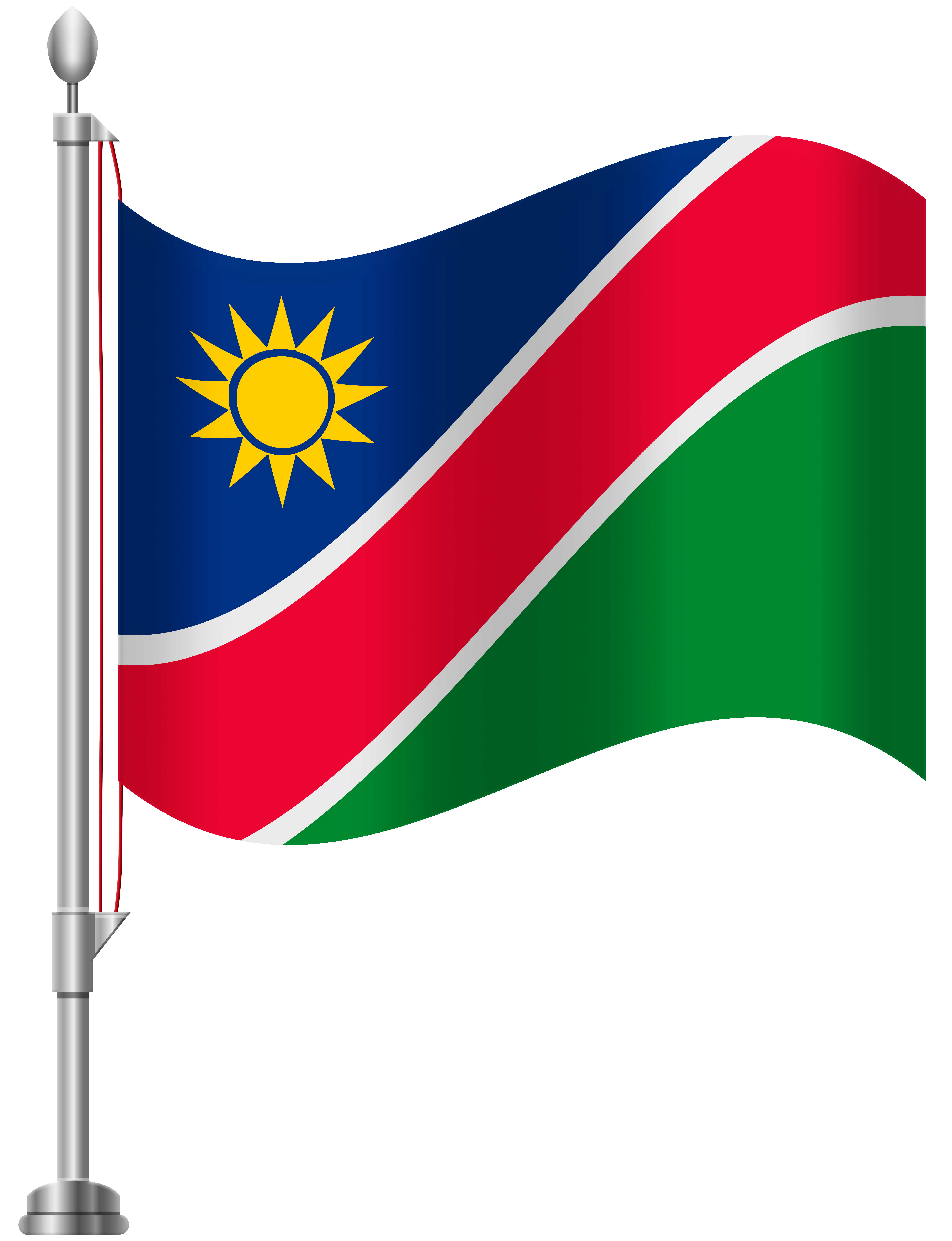 The flag has a red diagonal band with a white edge that radiates diagonally from the lower corner of the lift namibian. The flag of namimbia consists of a wide red stripe edged by narrow white stripes dividing the flag diagonally from lower hoist corner to upper fly corner.